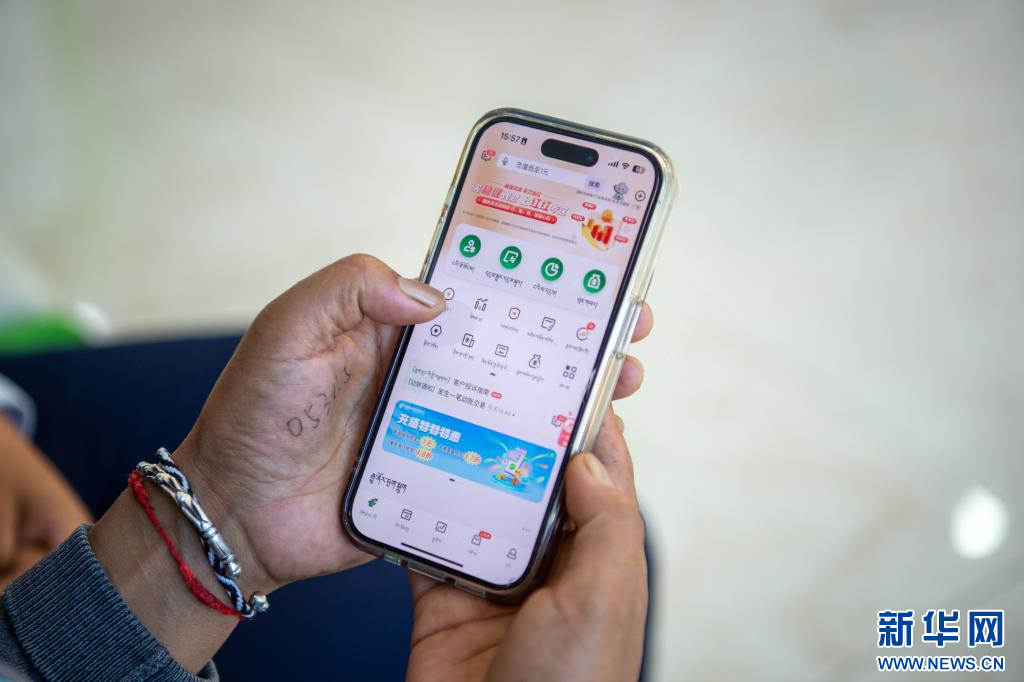 手機(jī)銀行藏文服務(wù)頁(yè)面。(新華社發(fā),旦增努布攝)