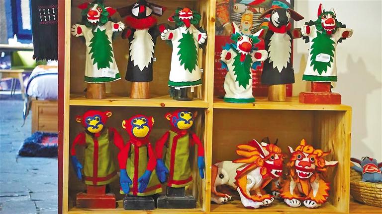 工作人員展示手工編織的十二生肖玩偶。 記者 王敏 攝