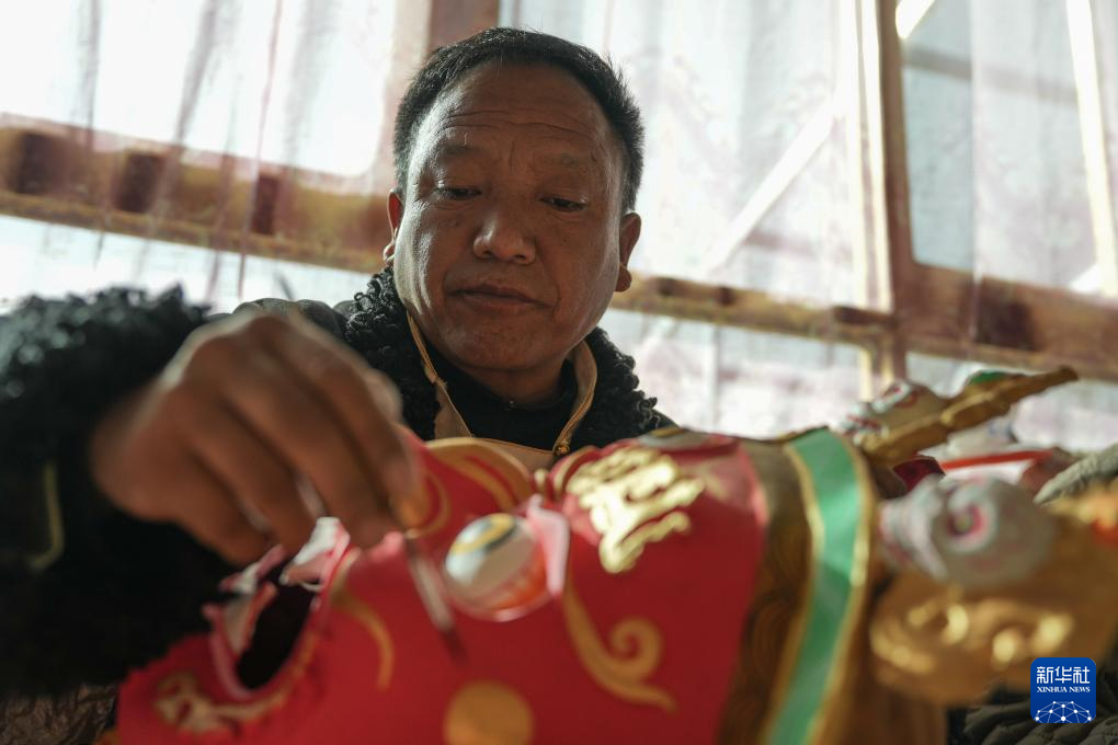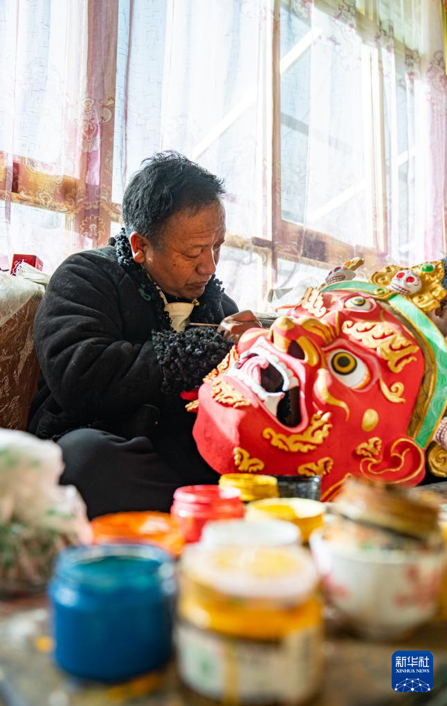 12月9日,西洛在合作社制作西藏傳統(tǒng)面具。新華社記者 丁增尼達(dá) 攝 ??