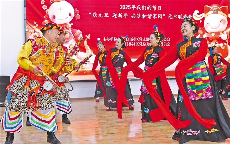 歡聲笑語(yǔ)辭舊歲,喜氣洋洋迎新年。為營(yíng)造歡樂(lè)祥和的節(jié)日氛圍,豐富社區(qū)居民文化生活,增強(qiáng)社區(qū)凝聚力,促進(jìn)鄰里和諧。近日,由拉薩市城關(guān)區(qū)策門林社區(qū)、藥王山社區(qū)主辦的2025年我們的節(jié)日“慶元旦 迎新年 共筑和諧家園”元旦聯(lián)歡會(huì)舉行?;顒?dòng)現(xiàn)場(chǎng),大家載歌載舞歡慶新年的到來(lái)?!?/p>