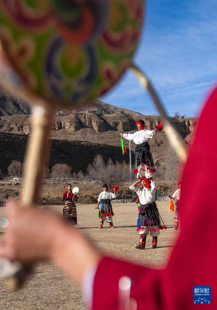 西藏昌都市丁青縣尺犢鎮(zhèn)烏巴村文藝演出隊(duì)在跳熱巴舞(1月5日攝)。新華社記者 丁增尼達(dá) 攝 ??