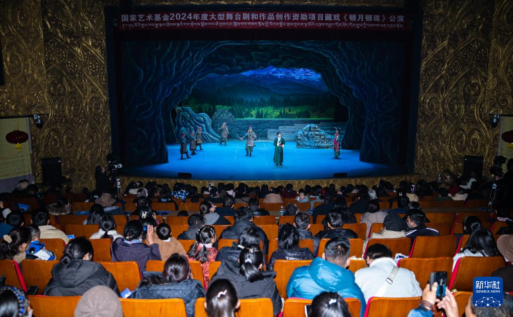 西藏首部少兒舞臺(tái)劇藏戲《頓月頓珠》演出現(xiàn)場(2月11日攝)。新華社記者 丁增尼達(dá) 攝??