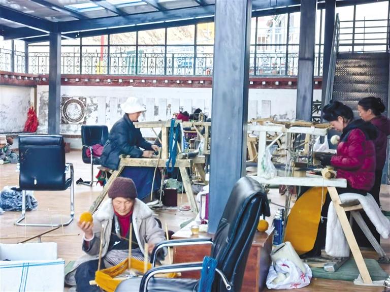 冬日里,走進林芝市朗縣登木鄉(xiāng)如字村齊功巾幗民族手工藝傳承加工合作社,織布機工作的聲音此起彼伏,現(xiàn)場一片繁忙景象。