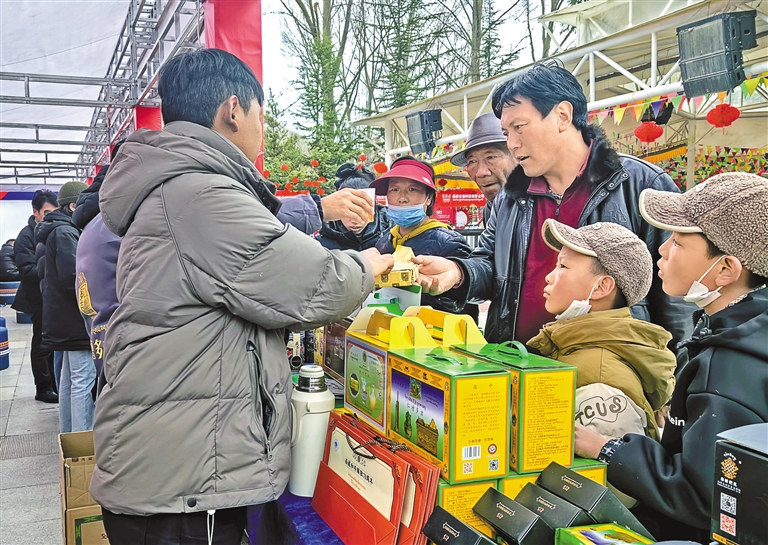 圖為市民在宗角祿康公園內(nèi)購(gòu)買(mǎi)低氟健康茶。記者 洛?!z