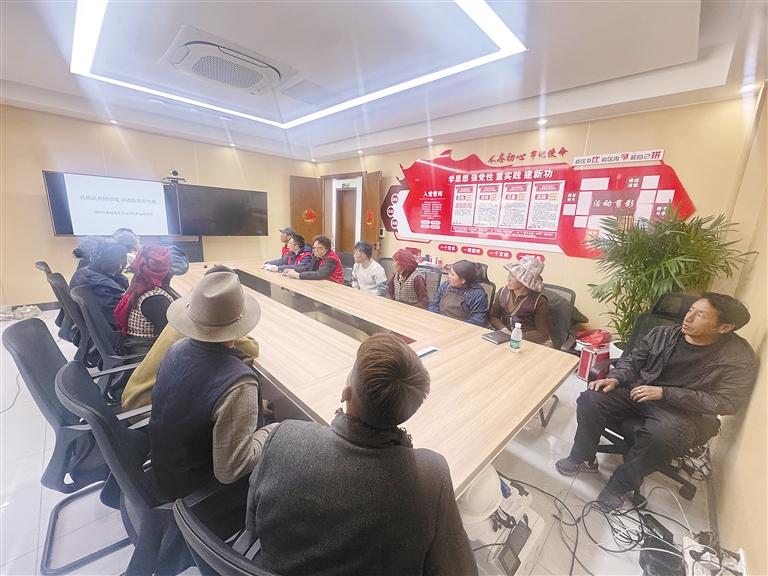 圖為國網(wǎng)西藏超高壓公司組織黨員服務(wù)隊(duì)向村民講解防汛減災(zāi)知識。記者 盧文靜 攝