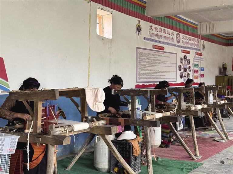 時(shí)光回溯到2002年,嘎日與格桑創(chuàng)立合作社時(shí),僅靠12名村民手工編織傳統(tǒng)邦典,年銷售額不足10萬(wàn)元。“那時(shí)候連染料錢都要精打細(xì)算?!备氯栈貞浀?。2011年格桑去世后,13歲起就跟著母親學(xué)藝的旦增卓嘎接過(guò)重?fù)?dān)——合作社對(duì)她而言,是童年的記憶、是父母的心血,更是她的一方天地。