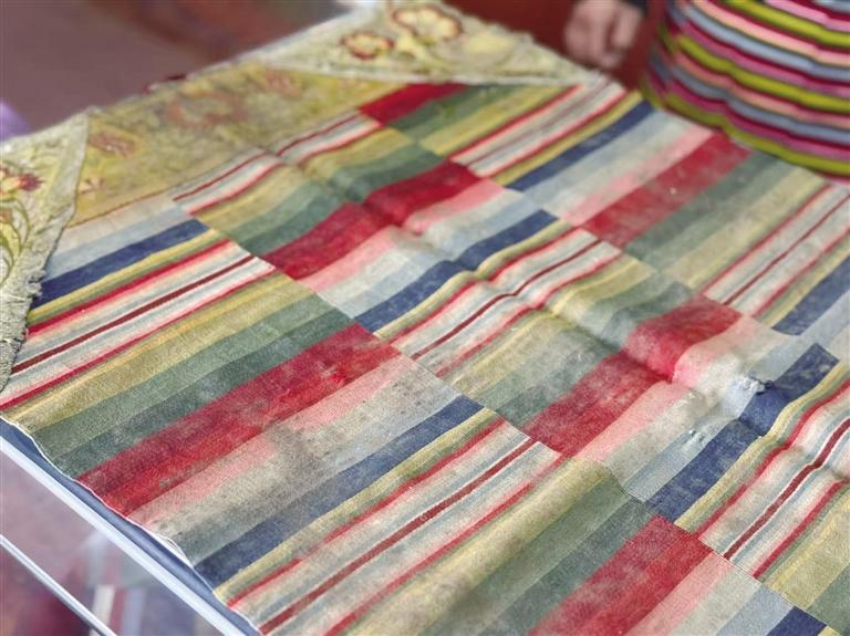 “年輕人喜歡邦典的色彩,但傳統(tǒng)圍裙的使用場(chǎng)景太少了。”旦增卓嘎開始嘗試“文化+設(shè)計(jì)”的跨界融合。她將邦典的彩虹條紋融入抱枕、手機(jī)殼,把傳統(tǒng)紋樣轉(zhuǎn)化為現(xiàn)代服飾的裝飾元素?!拔覀儾粌H賣圍裙,更在傳遞藏文化的生活美學(xué)。”旦增卓嘎在展廳內(nèi)介紹著傳統(tǒng)邦典和新型邦典的圖樣——從高端定制到平價(jià)文創(chuàng)小物,不同價(jià)位的產(chǎn)品覆蓋了國(guó)內(nèi)外不同消費(fèi)群體。
