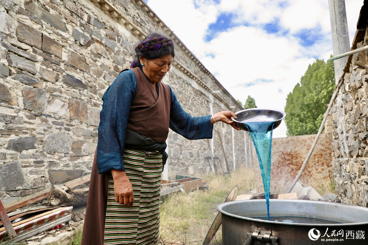 除了著色外,“邦典”的制作還需要經(jīng)過(guò)反復(fù)漿染、揉搓、晾曬等工序。