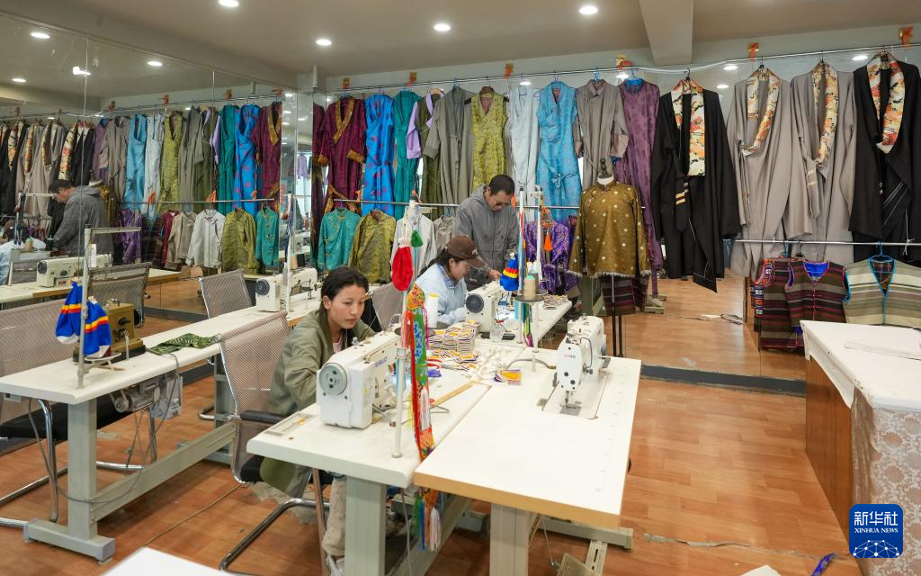 洛桑麥朗和學(xué)生一起制作的各類(lèi)藏裝(8月15日攝)。新華社記者 晉美多吉 攝