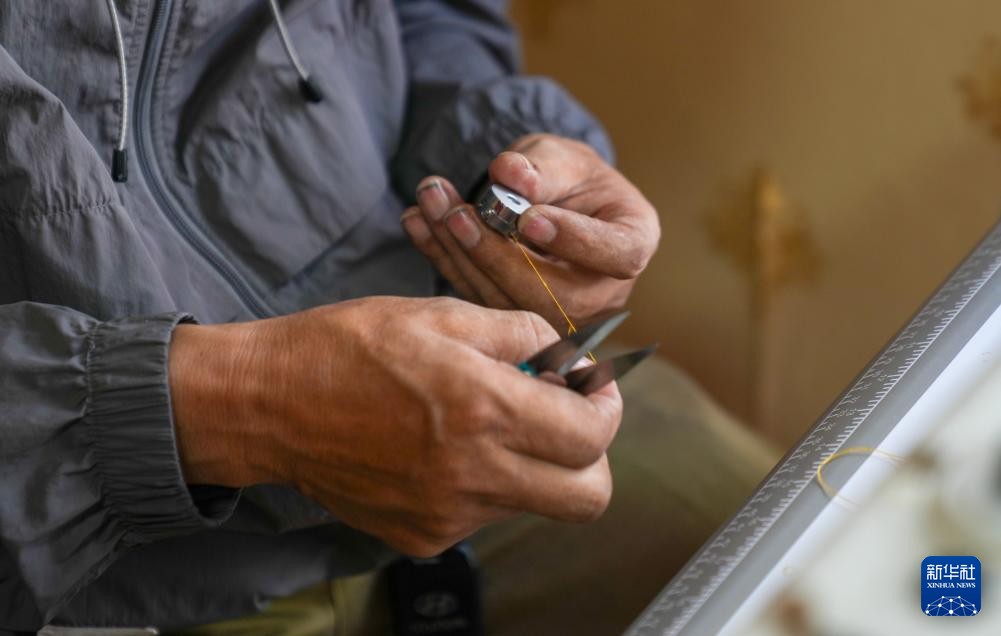 在拉薩城北的雪堆白傳統(tǒng)手工藝術(shù)學(xué)校里,今年60歲的洛桑麥朗正俯身指導(dǎo)兩名學(xué)生。洛桑麥朗于1965年生于昌都八宿縣,1983年,他赴拉薩系統(tǒng)研習(xí)服飾制作。“那時(shí)的藏裝款式單一,色彩也單調(diào)。”回憶往昔,老人語(yǔ)氣中滿(mǎn)是感慨。之后,洛桑麥朗在拉薩市堆龍德慶區(qū)的一所手工藝學(xué)校執(zhí)教。他教授學(xué)生拉薩服飾制作技藝的同時(shí),也虛心向來(lái)自安多、康巴等區(qū)域的學(xué)生請(qǐng)教當(dāng)?shù)夭匮b制作特色。這種博采眾長(zhǎng)的經(jīng)歷,讓他成為精通西藏全域服飾制作技藝的大師。2019年,洛桑麥朗被授予西藏自治區(qū)級(jí)非物質(zhì)文化遺產(chǎn)項(xiàng)目藏族服飾(拉薩服飾)代表性傳承人的稱(chēng)號(hào)。2022年,他又被授予首屆拉薩市工藝美術(shù)大師稱(chēng)號(hào)。他編撰的漢藏雙語(yǔ)《民族服裝制作》,也成為藏裝制作從業(yè)者的重要教材。