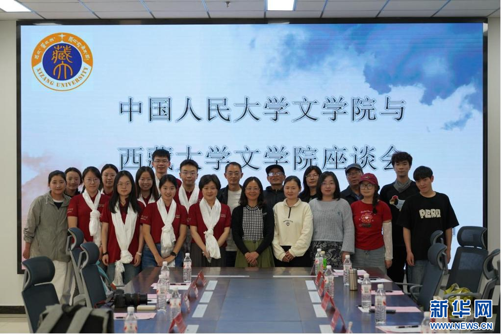 中國(guó)人民大學(xué)和西藏大學(xué)兩校文學(xué)院師生交流合影。周宸旭 攝