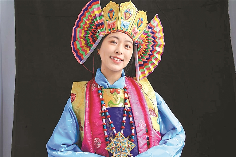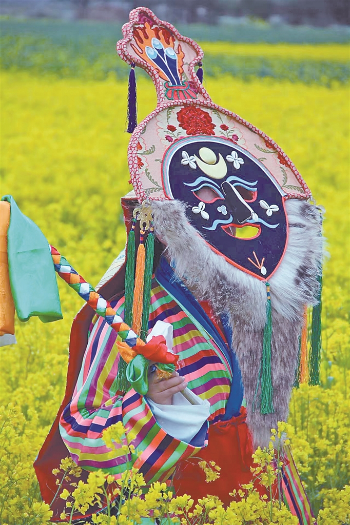 花至少三天時間制作一個大的藍(lán)面具,用一周左右制作一套藏戲服裝……在米瑪堅才手里,一抹抹絢麗的色彩渲染著角色的命運,一道道清晰的刻痕勾勒出故事的輪廓。