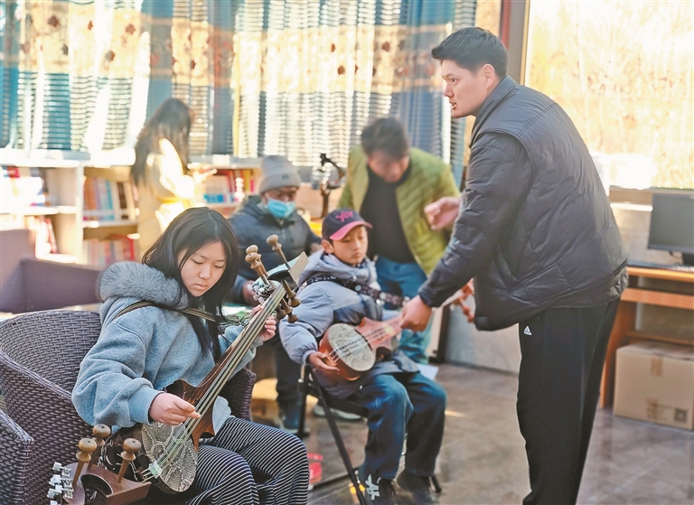 圖為孩子們在學(xué)習(xí)扎念琴演奏技巧。郝一男 劉宇辰 王敏 攝