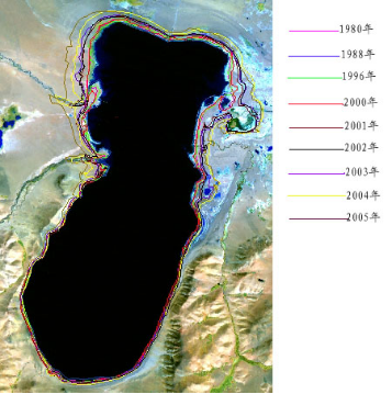 這是巴木錯(cuò)湖泊1980年至2005年水面面積遙感動(dòng)態(tài)變化監(jiān)測(cè)圖。(受訪單位供圖)