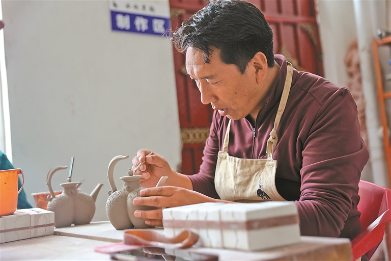 公司實行“按勞計酬”的薪酬制度,為員工提供了穩(wěn)定的收入保障。這份“家門口”的可觀收入,讓員工們穩(wěn)穩(wěn)撐起了家庭的幸福生活?!耙郧霸诩曳N地,收入不穩(wěn)定,現(xiàn)在在公司做黑陶,不僅學(xué)到了一門手藝,每個月還有固定工資,日子越過越有盼頭了!”作為曲珠的第一批學(xué)生,扎西如今已能獨立設(shè)計制作復(fù)雜的黑陶茶具,月薪穩(wěn)定在5000元左右,他的感慨道出了所有員工的心聲。這些扎根鄉(xiāng)土的手藝人,不僅用雙手改變了生活,更因?qū)@門技藝的熱愛與堅守,成為察雅黑陶傳承路上的重要力量。