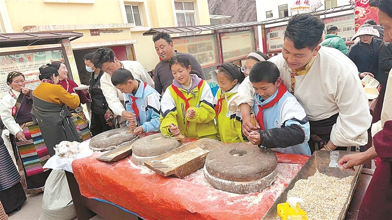 近日,在開展村級、鄉(xiāng)級“紅色昌都·振興奮進(jìn)”群眾性比賽活動(dòng)中,卡若區(qū)專門組織轄區(qū)各中小學(xué)適齡學(xué)生參與傳統(tǒng)生產(chǎn)技能體驗(yàn)活動(dòng),現(xiàn)場設(shè)置磨糌粑、打酥油茶等極具昌都本地民俗特色的傳統(tǒng)生產(chǎn)技能體驗(yàn)項(xiàng)目,邀請當(dāng)?shù)厥煜鹘y(tǒng)技藝的長輩、民間能手現(xiàn)場手把手教學(xué)指導(dǎo),一改以往文化宣傳的枯燥形式,真正讓優(yōu)秀傳統(tǒng)文化可感、可學(xué)、可體驗(yàn)。