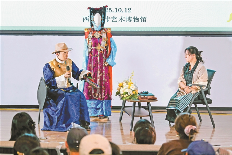 2025年10月,在西藏唐卡藝術(shù)博物館,班珠丹塔(左)與中國(guó)藏學(xué)研究中心的研究員次仁央宗合作主講《霓裳藏韻:衛(wèi)藏古典服飾里的文化、禮制與時(shí)代流變》。