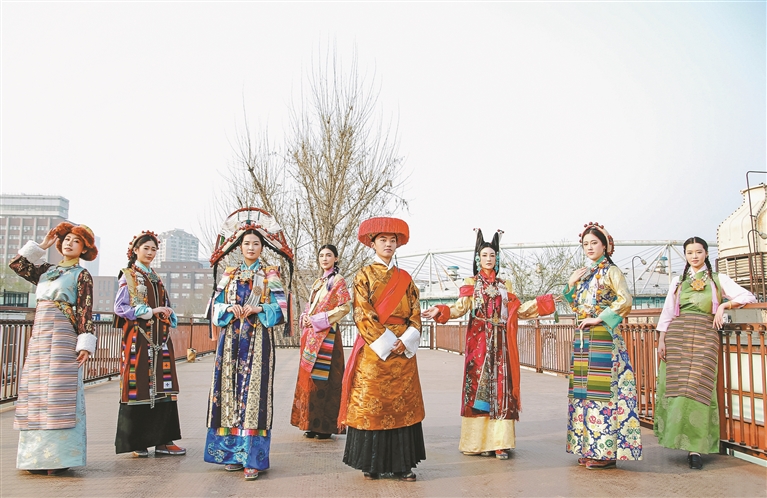 班珠丹塔(右四)設(shè)計(jì)的7套融合西藏傳統(tǒng)技藝與現(xiàn)代美學(xué)的藏裝作品。