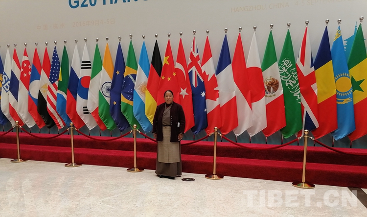 圖為2019年12月瓊結(jié)縣政協(xié)組織政協(xié)委員到杭州視察工作時,桑吉在G20峰會杭州主會場留影。