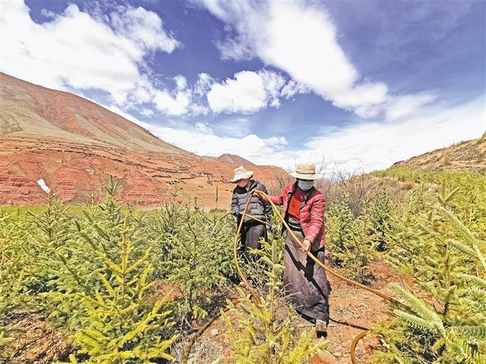 西藏昌都市丁青縣覺恩鄉(xiāng)絨通村苗木種植項(xiàng)目總投資2000萬元,采取“公司+基地+農(nóng)戶”的運(yùn)作模式。2018年底,基地開工建設(shè),93戶農(nóng)戶以每畝每年1000元的價(jià)格參與500畝的土地流轉(zhuǎn),項(xiàng)目實(shí)施階段共計(jì)880人次的貧困戶參與了務(wù)工。至2019年6月,已成功栽下云杉、昌都楊、柳樹、榆樹4個(gè)品種,共計(jì)97萬株樹苗。目前,在基地長(zhǎng)期務(wù)工的村民有8名,年收入近2萬元。