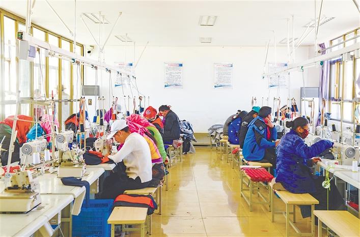 西藏阿里地區(qū)噶爾縣獅泉河鎮(zhèn)康樂(lè)新居是由5個(gè)縣區(qū)的易地扶貧搬遷戶組成的社區(qū),共714戶3152人。為鞏固脫貧攻堅(jiān)成果,方便農(nóng)牧民群眾就近就便就業(yè),增加居民收入,2017年開始,這里成立了服裝、地毯加工廠,搬遷后的農(nóng)牧民群眾既掌握了技能,也改善了生活條件。