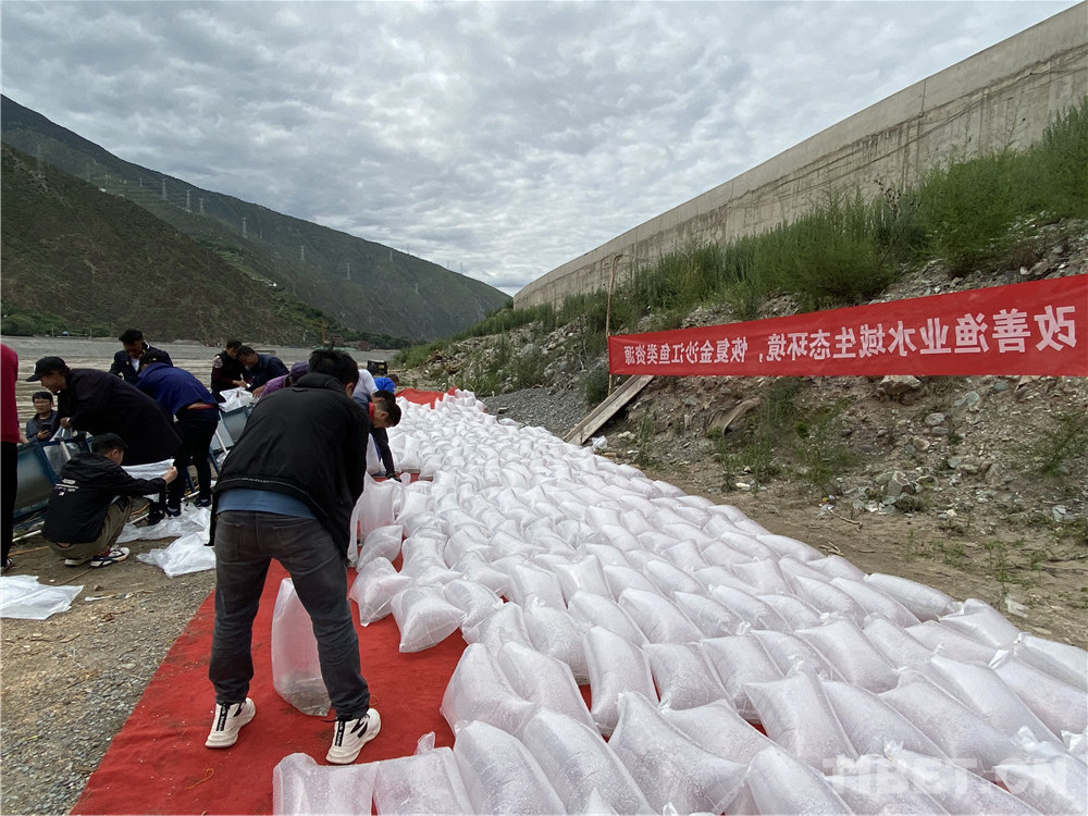 在工作人員協(xié)助下,老阿媽把一袋袋魚苗放入江中。據(jù)老阿媽說,當(dāng)年十八軍進(jìn)藏路過這里,帶的糧食不多,他們不向當(dāng)?shù)厝苏骷Z,有些人餓得浮腫。江河中的魚兒好抓,但沒有一個(gè)戰(zhàn)士違反紀(jì)律去抓魚。藏族敬畏魚,不捕魚,不吃魚。解放軍尊重當(dāng)?shù)仫L(fēng)俗,即使餓死也不抓魚充饑。