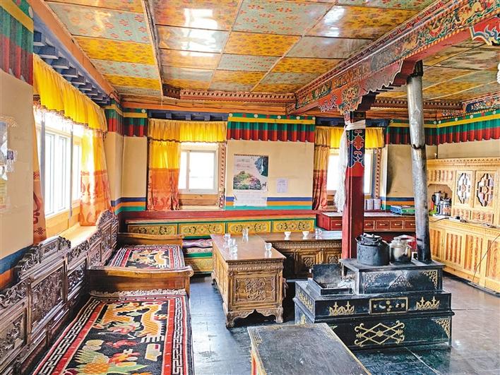 次仁玉珍今年60歲,家里有兩個女兒。走進次仁玉珍家,干凈的小院、寬敞的房子、屋內(nèi)各式家具家電一應(yīng)俱全。“以前,家里的房子又小又破,只有幾十平方米,每逢下雨,屋子還漏雨。2016年,政府幫我們翻修擴建了房子,我們自己只出了5000元,現(xiàn)在的新房有250平方米左右?!贝笈畠捍稳恃虢鹫f。