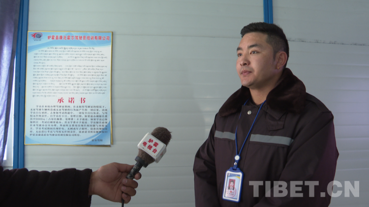 圖為爐霍電視臺(tái)記者采訪駕校工作人員 作者提供