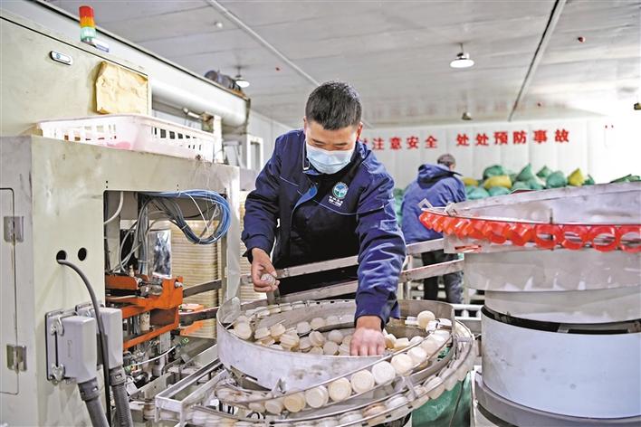 圖為日喀則市珠峰一見則喜生物科技示范園區(qū)內(nèi)工作人員在生產(chǎn)線上忙碌。記者 唐斌 洛桑 攝