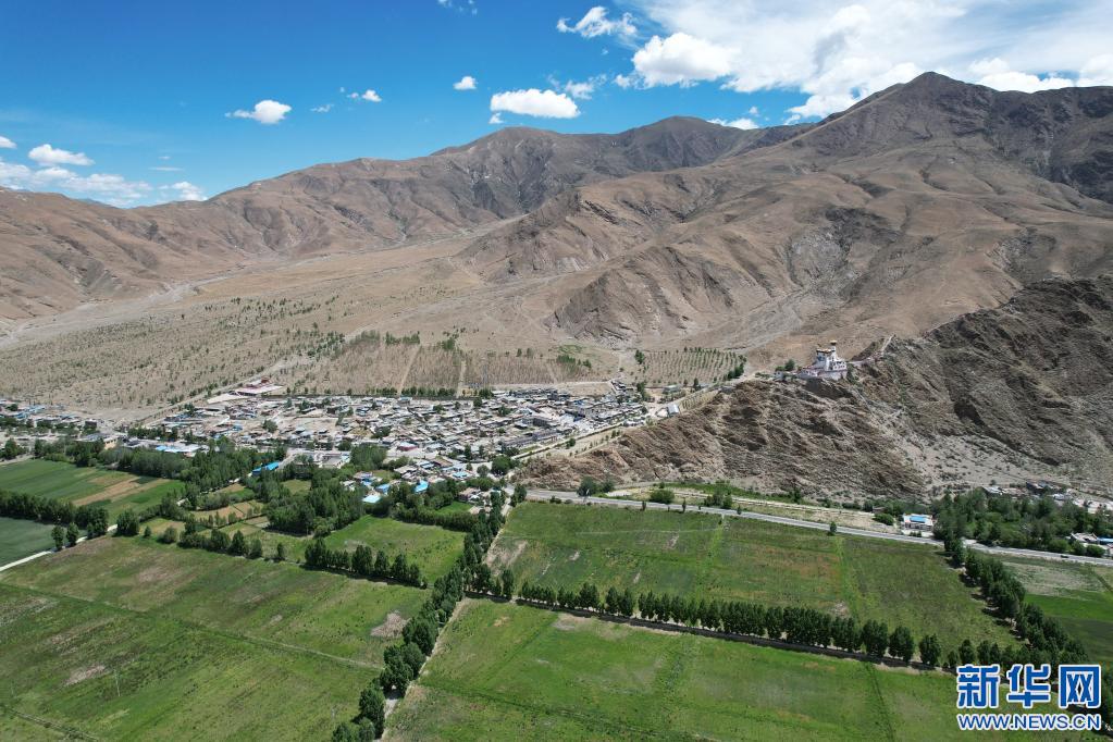 遠(yuǎn)眺雍布拉康和門中崗社區(qū)(無人機(jī)照片,6月24日攝)。新華社記者 司源 攝
