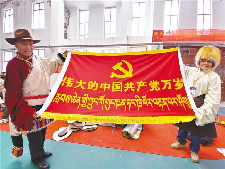 也有不少牧民,希望把藏北牧民愛黨愛國愛家鄉(xiāng)的熱情注入到傳統(tǒng)工藝當(dāng)中。在比賽現(xiàn)場,記者看到很多牧民在傳統(tǒng)的氆氌和背包上刺繡、拼貼出黨徽、國旗、天安門等圖案,或繡出“偉大的中國共產(chǎn)黨萬歲”“鄉(xiāng)村振興那曲奮進(jìn)”等字樣。