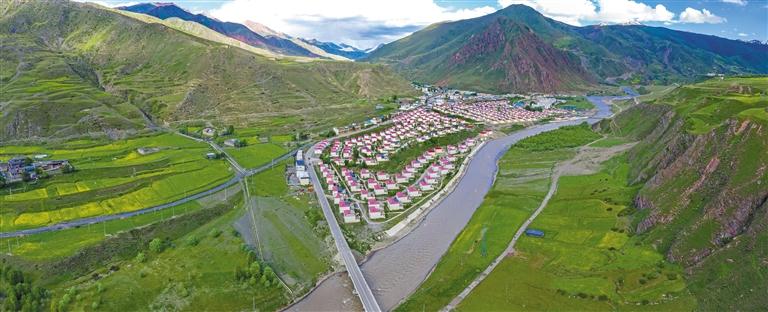 圖為在國道317線昌都段拍攝的丁青縣尺牘鎮(zhèn)全景(無人機(jī)照片)。新華社記者 姜帆 攝