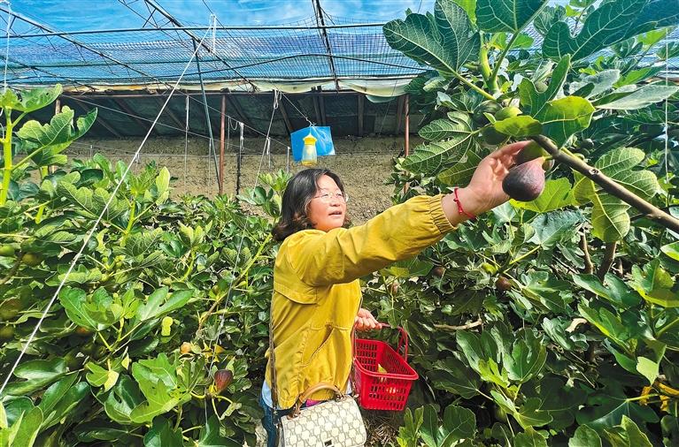 圖為市民在拉薩市達孜區(qū)純凈生態(tài)采摘園內(nèi)采摘無花果。記者 潘多 攝