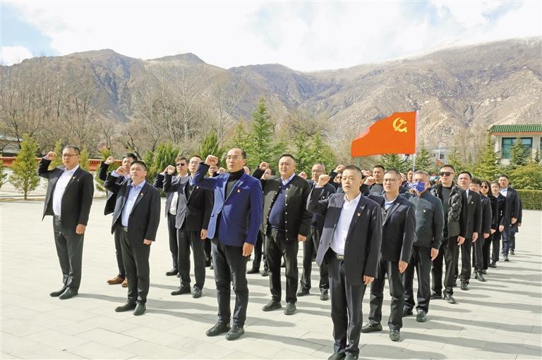 圖為興業(yè)銀行拉薩分行黨員干部重溫入黨誓詞。