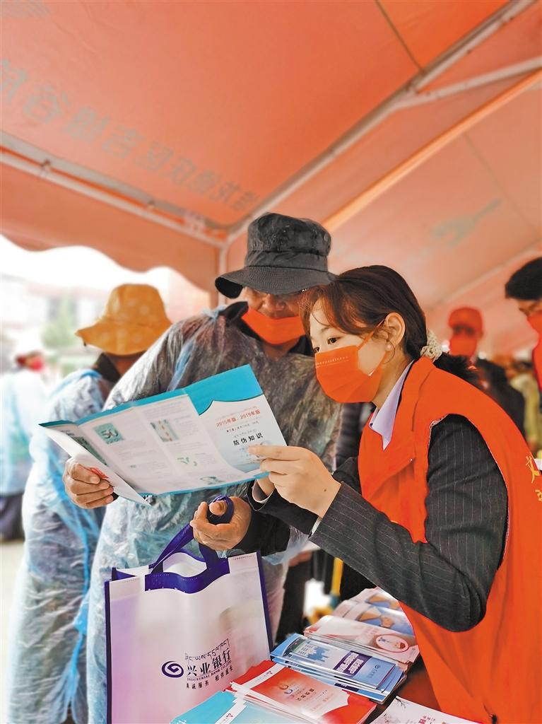 圖為興業(yè)銀行拉薩分行志愿者開(kāi)展金融知識(shí)宣傳。