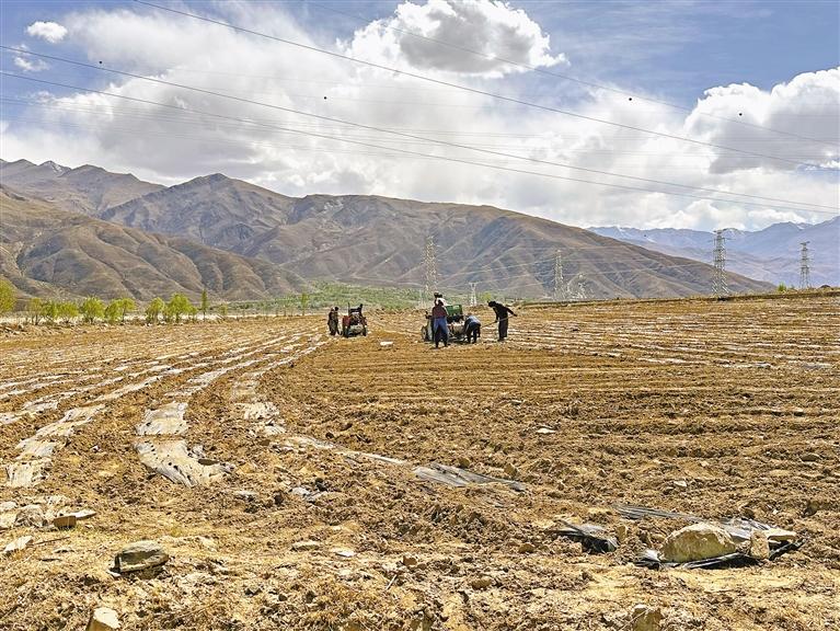 回憶起剛開荒時的情形,洛珠達(dá)瓦說:“我們每天組織公司全體職工和村民30多人,以及多臺挖掘機(jī)、破石機(jī)、拖拉機(jī)等機(jī)械設(shè)備,連續(xù)工作了1個多月。地底石頭較多,機(jī)械設(shè)備用壞了好幾臺。即使對土地進(jìn)行了多次翻耕,但土地沙化依然嚴(yán)重,無法種植莊稼?!?/p>