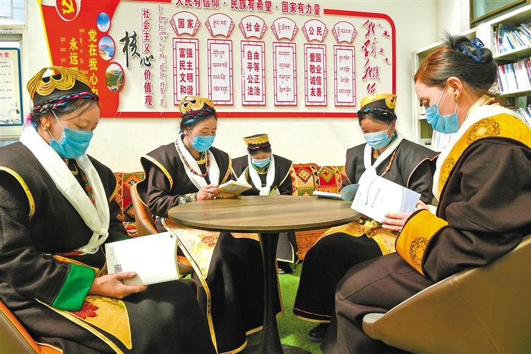 圖為林芝市工布江達縣金達鎮(zhèn)加龍村的群眾在農(nóng)家書屋讀書。記者 王敏 攝