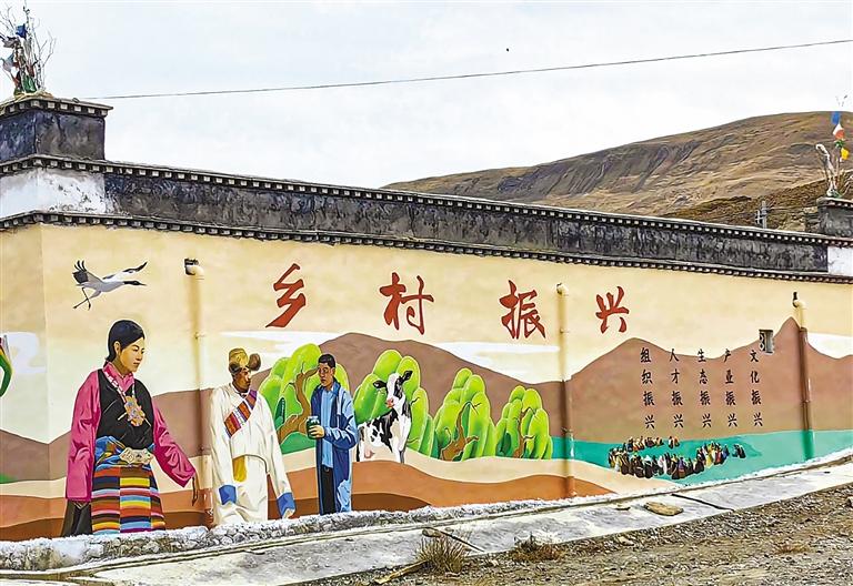 圖為桑珠孜區(qū)鄉(xiāng)村社區(qū)文化墻一瞥。 記者 楊子彥 攝