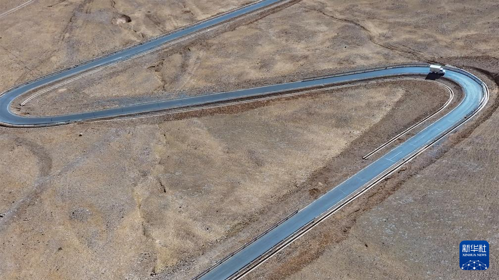 申扎縣供銷合作社為馬躍鄉(xiāng)貝嘎四村偏遠(yuǎn)鄉(xiāng)鎮(zhèn)果蔬配送試點(diǎn)項(xiàng)目直銷點(diǎn)配送新鮮果蔬的貨車,行駛在盤山公路上,這個(gè)村距離申扎縣城150公里(無人機(jī)照片,1月5日攝)。新華社記者 旦增尼瑪曲珠 攝