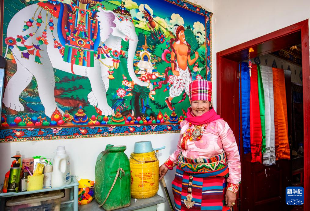 今年51歲的戶主格桑松塔說(shuō),以前冬天用水要去幾公里外的湖上鑿冰,后來(lái)要去幾百米外的機(jī)電井水房背水,自從2023年11月搬入新居,足不出戶就能用上水。他身旁,連接上水管的洗衣機(jī)正發(fā)出工作的轟隆聲。