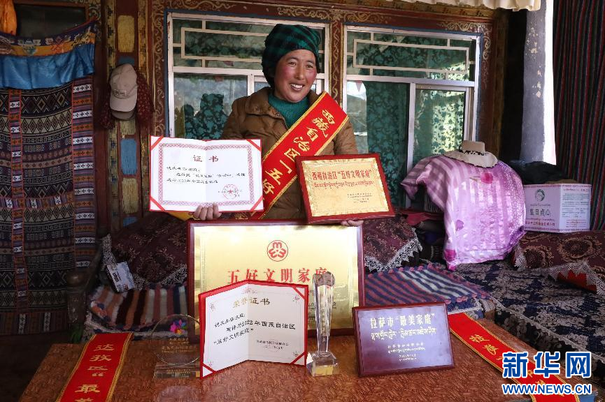 德慶央宗家庭在2022年5月被評為“西藏自治區(qū)五好家庭”,2023年又被評為“全國最美家庭”(1月29日攝)。新華網(wǎng)發(fā) 李騰 攝