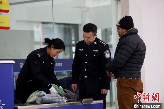 圖為聶拉木邊檢站民警對(duì)出境旅客的行李物品進(jìn)行檢查?!∴u興國(guó) 攝