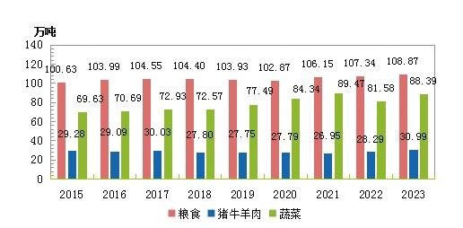 圖3 2015-2023年主要農(nóng)畜產(chǎn)品產(chǎn)量