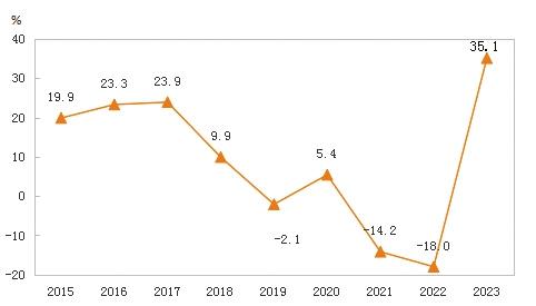圖5 2015-2023年全社會(huì)固定資產(chǎn)投資增長(zhǎng)速度