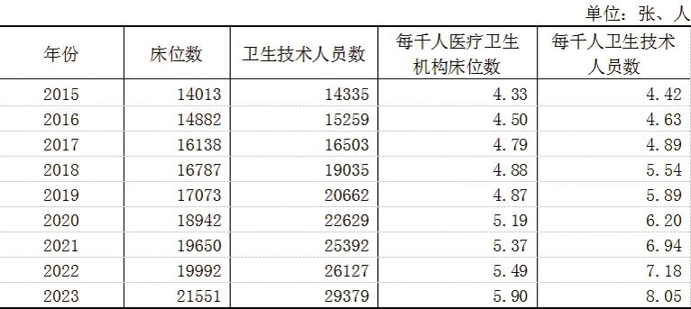 表4 衛(wèi)生機(jī)構(gòu)床位數(shù)和技術(shù)人員數(shù)