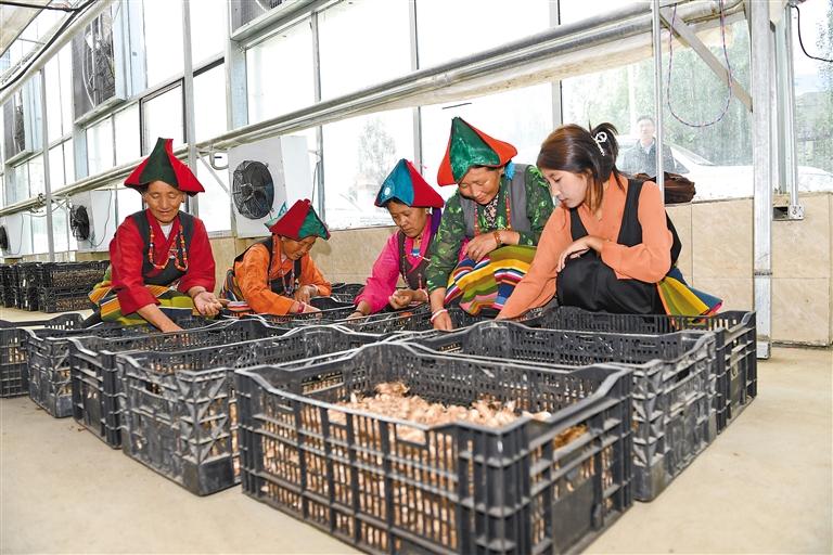 圖為在日喀則市薩迦縣扯休鄉(xiāng)藏紅花種源種養(yǎng)基地內(nèi),工人對(duì)藏紅花種子進(jìn)行分類。記者 王敏 劉倩茹 攝