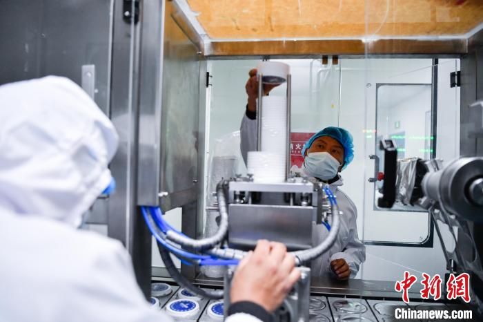 10月25日,西藏自治區(qū)那曲市聶榮縣,畜產(chǎn)品深加工產(chǎn)業(yè)正成為帶動(dòng)牧民增收致富的新引擎。圖為嘎確生態(tài)畜牧業(yè)發(fā)展有限責(zé)任公司的工人在酸奶生產(chǎn)流水線上工作。中新社記者 貢嘎來松 攝