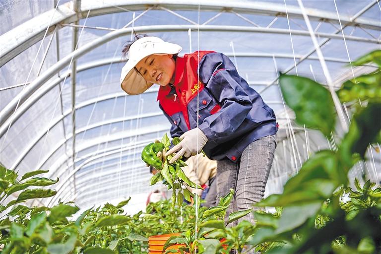 拉薩冬意漸濃,園區(qū)連片的溫室大棚,在冬日暖陽下熠熠生輝,宛如一個(gè)個(gè)孕育希望的“菜籃子”,豐富冬日市場供應(yīng)。走進(jìn)蔬菜大棚,棚內(nèi)暖意融融、綠意盎然,黃瓜、西紅柿、青椒等各類蔬菜均已進(jìn)入成熟期,長勢十分喜人。眼下,正是大棚青椒采摘期,一壟壟、一株株青椒掛滿枝頭,工作人員三五成群忙著采摘,現(xiàn)場一派繁忙景象?!安烧嘟芬蛏险郏@樣才不會損傷植株?!痹诘┰銮闹笇?dǎo)下,工作人員很快完成了采摘工作,打包、稱重后,37袋青椒被整齊地?cái)[放在一起,等待著裝車發(fā)貨。