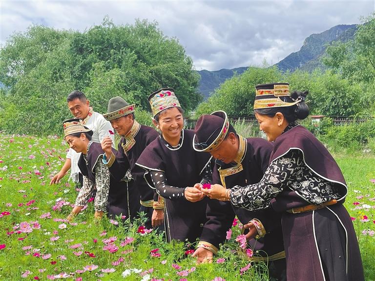 嘎拉村村民在賞花。通訊員 黃海芬 攝