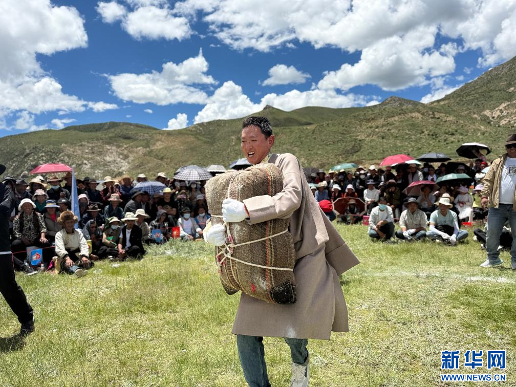 此次運動會集競技、文藝、特色產(chǎn)業(yè)展示于一體,亮點紛呈。拔河比賽中,參賽隊員齊心協(xié)力,觀眾吶喊助威,展現(xiàn)出團結奮進的精神風貌;抱沙袋、押加等傳統(tǒng)項目激烈角逐,卡乃村村民普布扎西奪得抱沙袋男子組冠軍,他激動地表示:“和大家一起拼搏奪冠,特別有意義!”